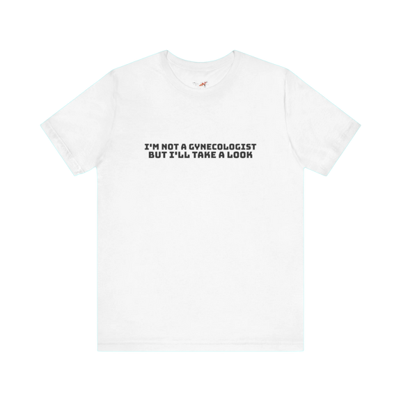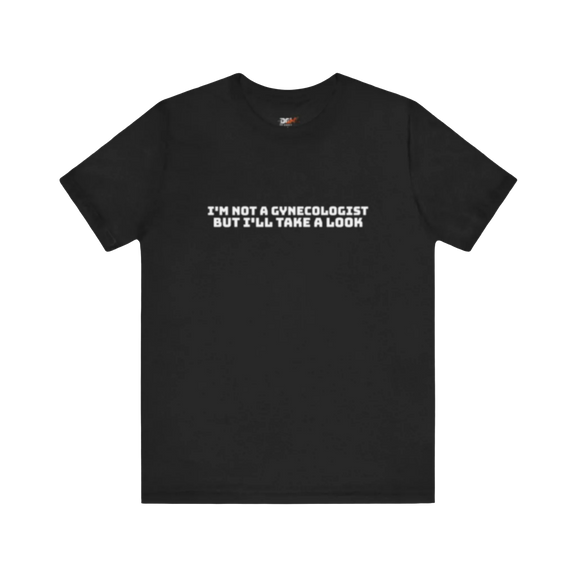 Introducing our “I’m Not a Gynecologist, But I’ll Take a Look” Unisex Jersey Short Sleeve Tee for anyone who appreciates straightforward, bold humor without trying too hard. Made from soft, breathable 100% Airlume cotton, this shirt is comfortable for casual days, nights out, or just getting a laugh without saying a word.