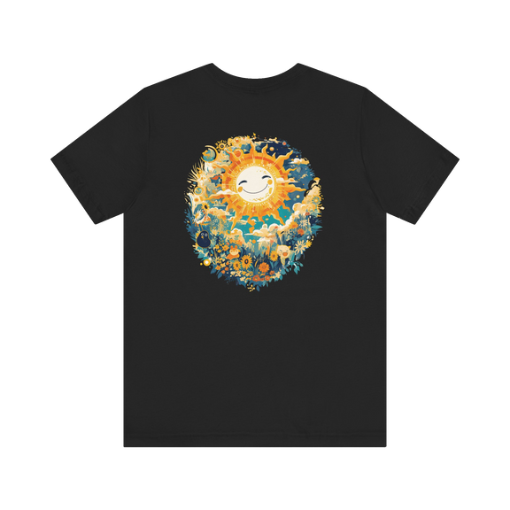 The design features a radiant sun illustrated in a Studio Ghibli-inspired art style, full of gentle lines and a calming, storybook feel. With a classic crew neckline and retail fit, this shirt is easy to wear and pairs beautifully with any casual outfit.